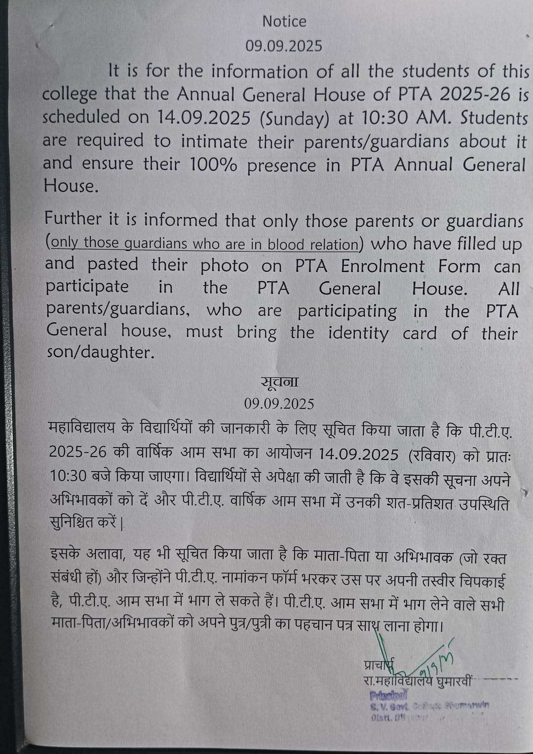 – Prof. Pritam Lal ( Officiating Principal )